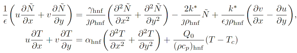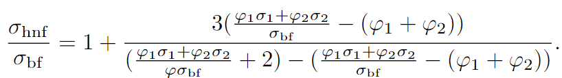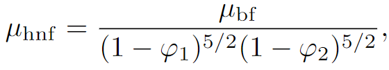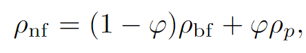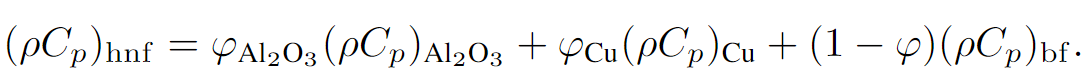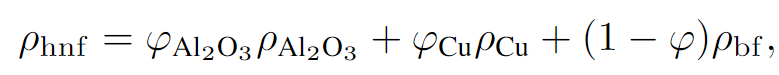 (8)Equation (8) was originally introduced for determining density of nanofluid and then widely employed in [9]. So, the density of hybrid nanofluid is specified by