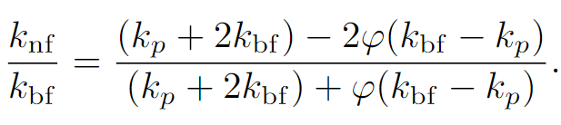 If the thermal conductivity of hybrid nanofluid is defined according to Maxwell model, Eq. (10) must be employed for this objective: