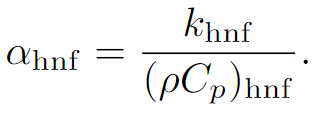 (10)Thus, thermal diffusivity of the hybrid nanofluid, α