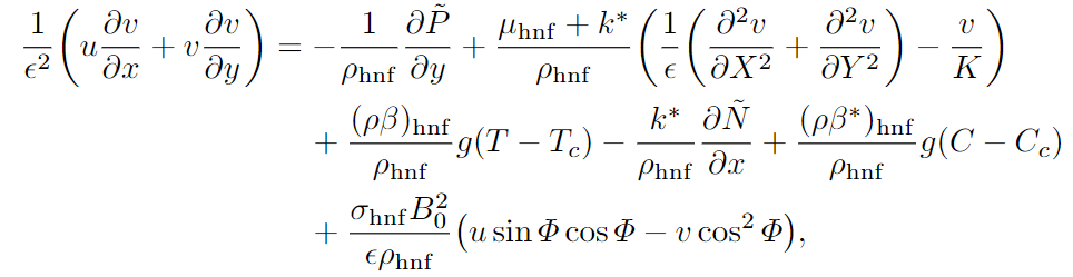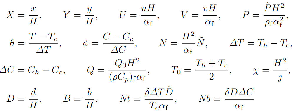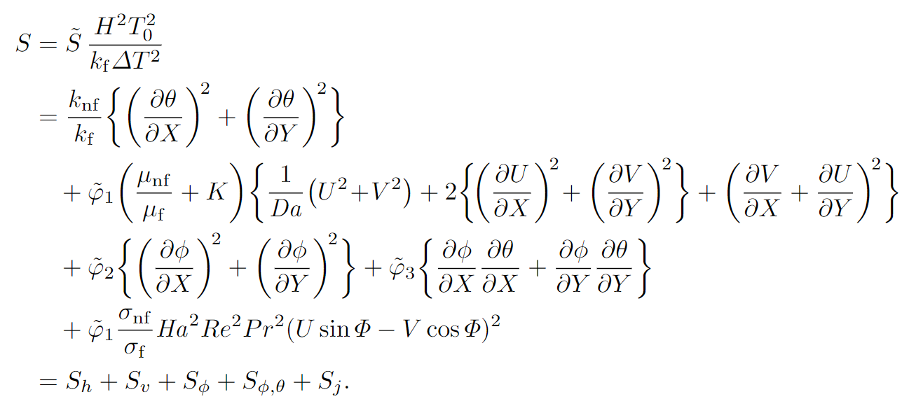 Due to Mahmud and Fraser [20], Magherbi et al. [16] and local thermodynamic equilib- rium of linear transport theory, the nondimensional total local entropy generation can be expressed by implementing the dimensionless variables appeared in Eq (11) as