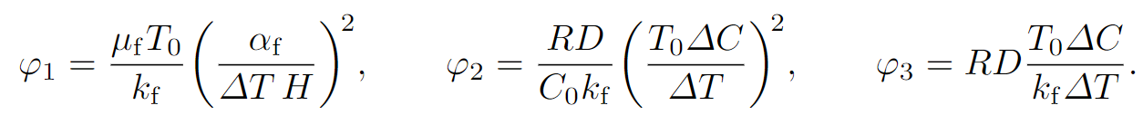 into Eqs. (1)–(7) yields the following dimensionless equations: