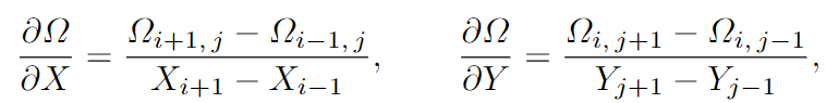 (12)Here it should be mentioned that SΩ refers to the source terms (including the pressure gra- dients and buoyancy terms in the momentum equations). The central differences scheme is used to estimate the first and second derivatives as