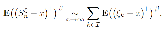 The following statement is Theorem 3.1 in [7]. The statement provides the asymptotic results for tail probability of sums of