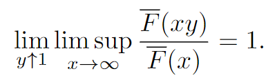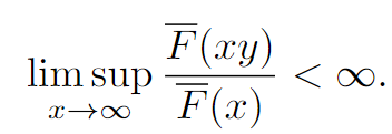 A d.f. F supported on R is said to be heavy-tailed, written as F , if for every it holds that