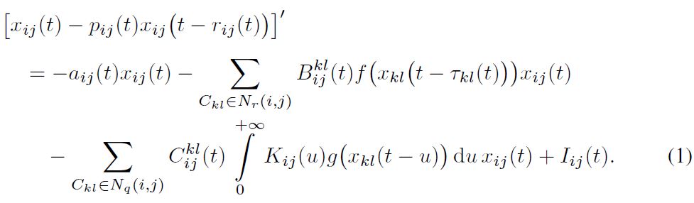 be the units amount, the neutral-type SICNNs incorporating D operators, continuously distributed delays and time varying delays are often modelled as the neutral-type functional differential equations