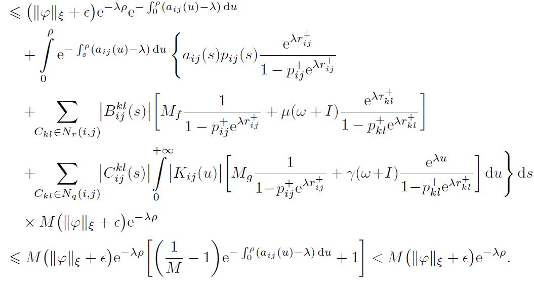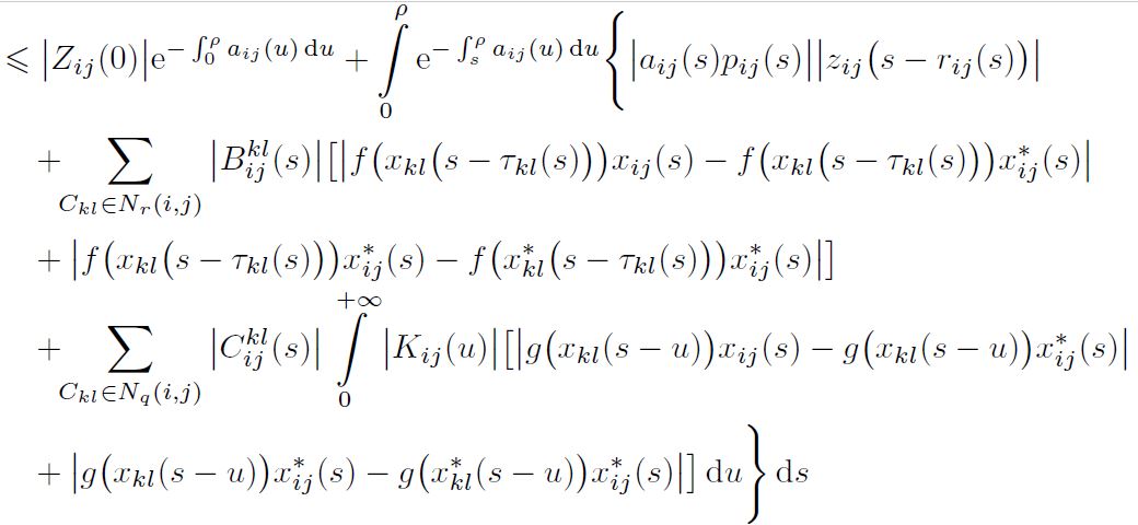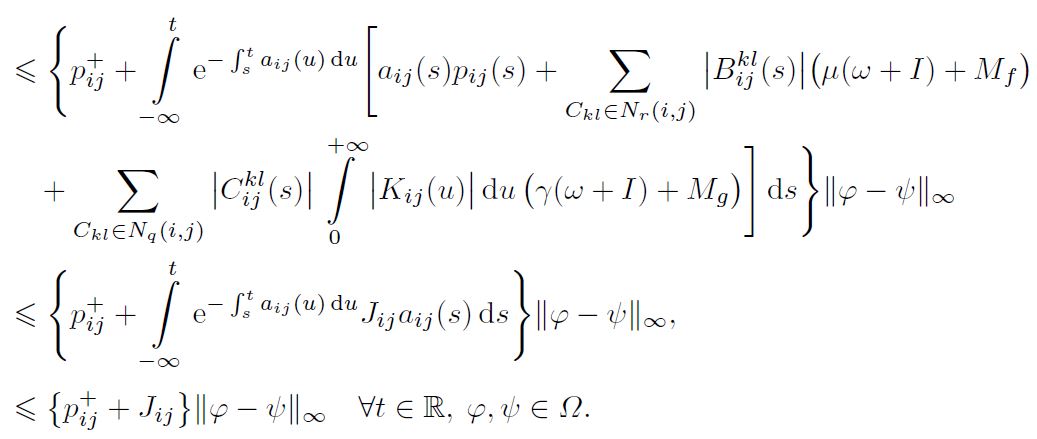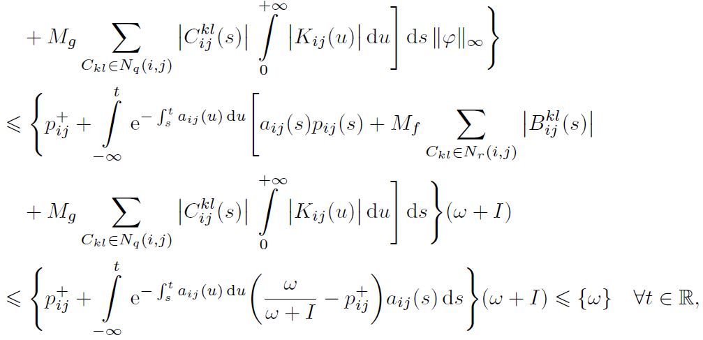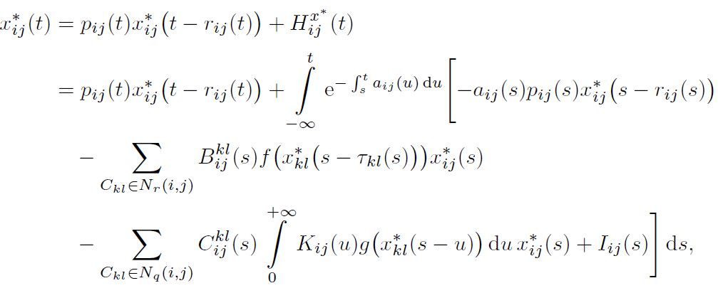 Proof. Firstly, we evidence that the possible existing almost periodic solution has even- tual positiveness. To do this, assume that the SICNNs (1) possesses a globally exponentially stable almost periodic solution