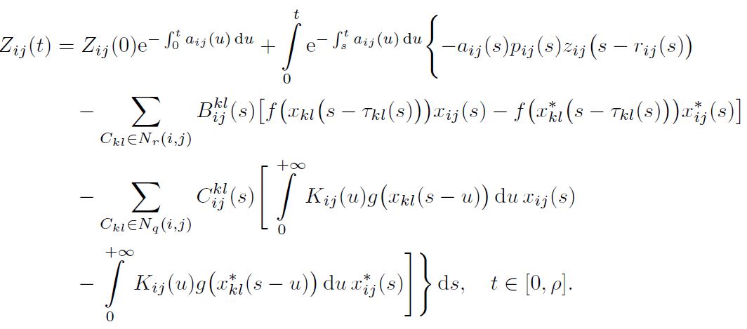 Hereafter, to show the positiveness of bounded solutions on SICNNs (1), we make the following hypotheses: