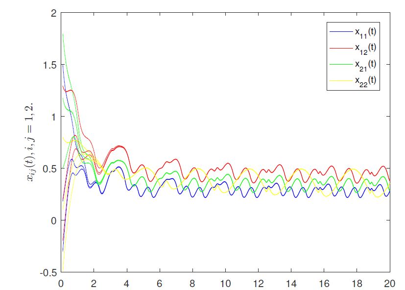 Obviously, all requirements of Theorem 1 are obeyed in (25). Thus, SICNNs (25) pos- sesses a sole one globally exponentially stable almost periodic solution, which has posi- tiveness (see Fig. 1).