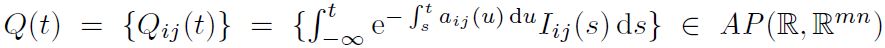 Theorem 1. Under the presumptions of (S0).(S2), (3) and (4), SICNNs (1) possesses just one almost periodic solution