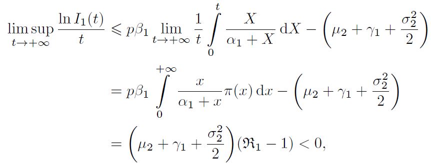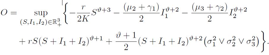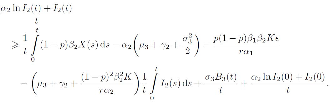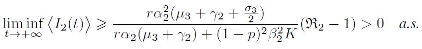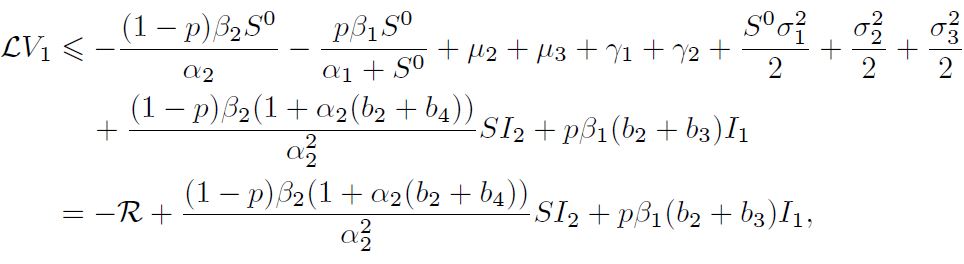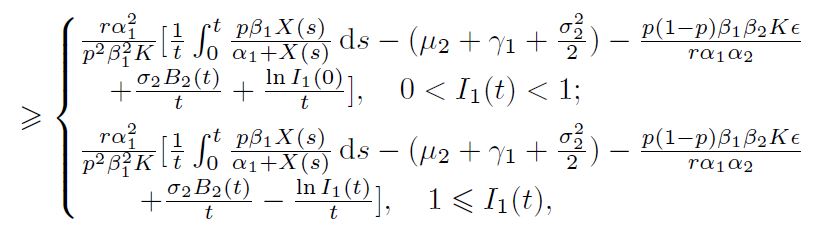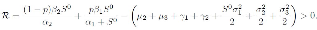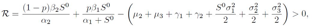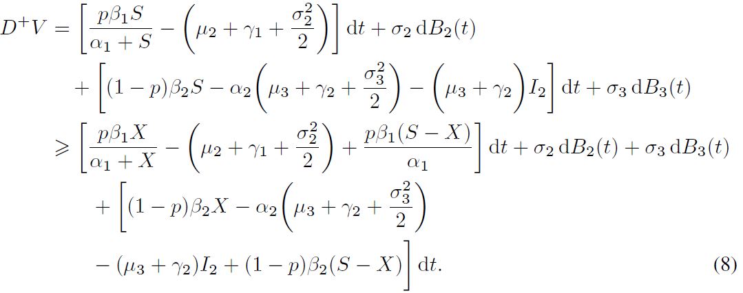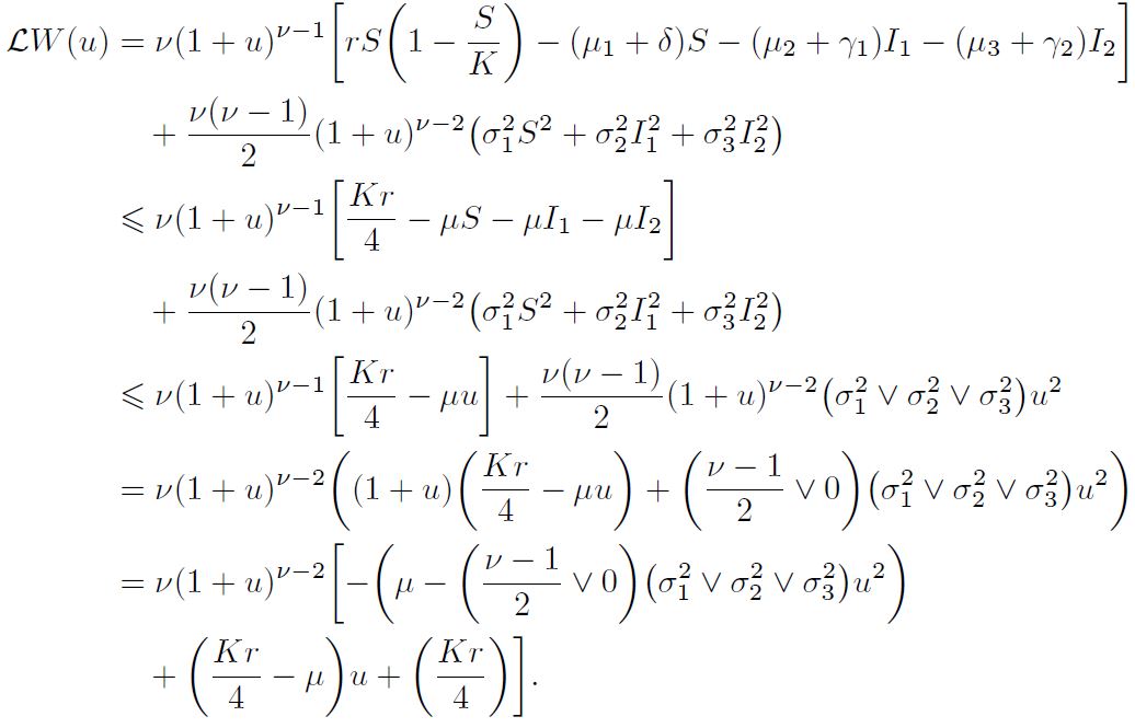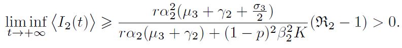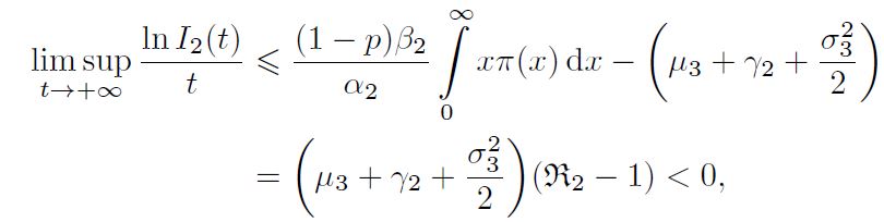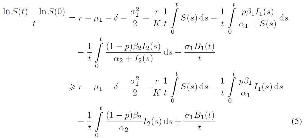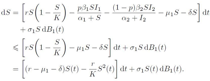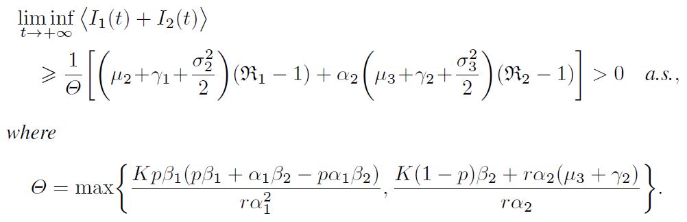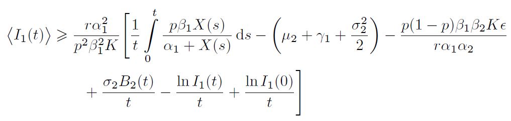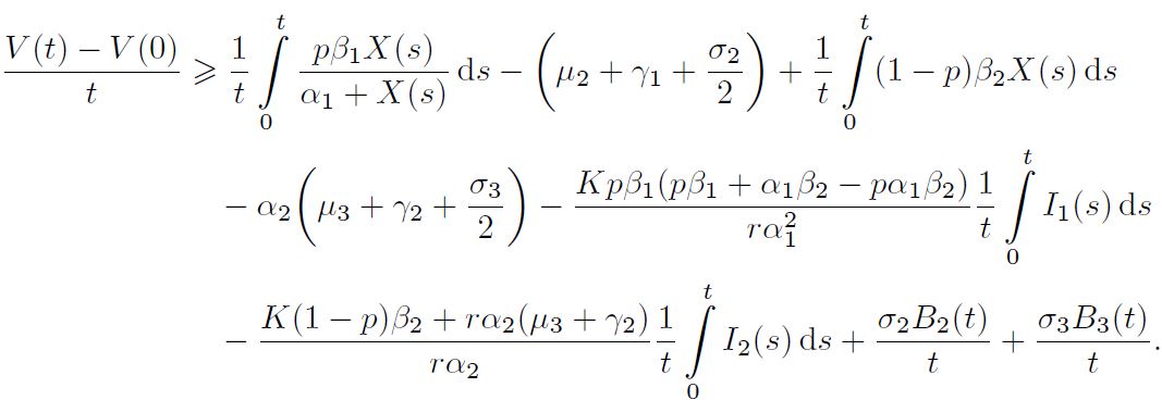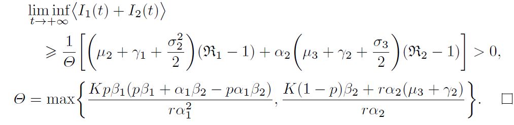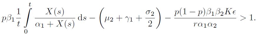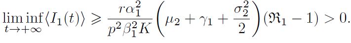 will be persistent in the mean. Similar to the item (ii), this result suggests that small stochasticity is beneficial to the survival of the diseases. (iii) When
