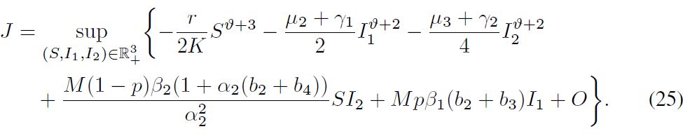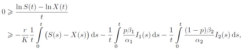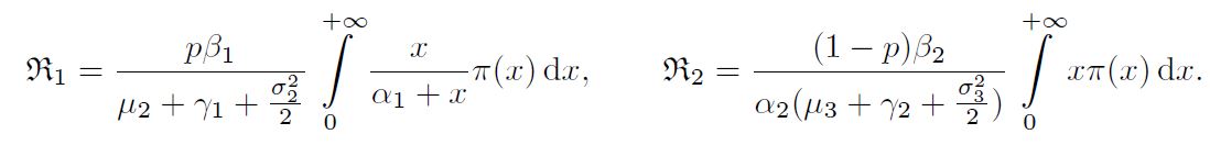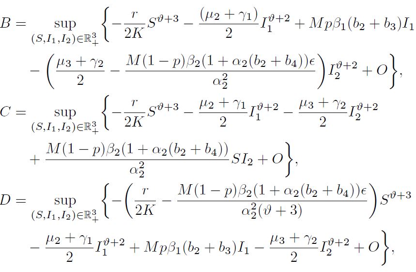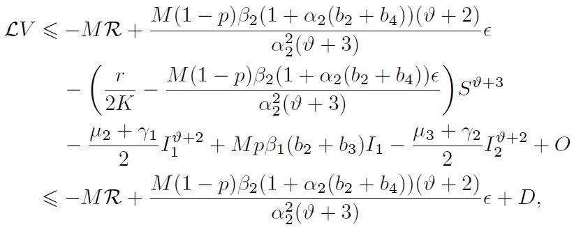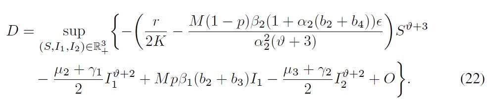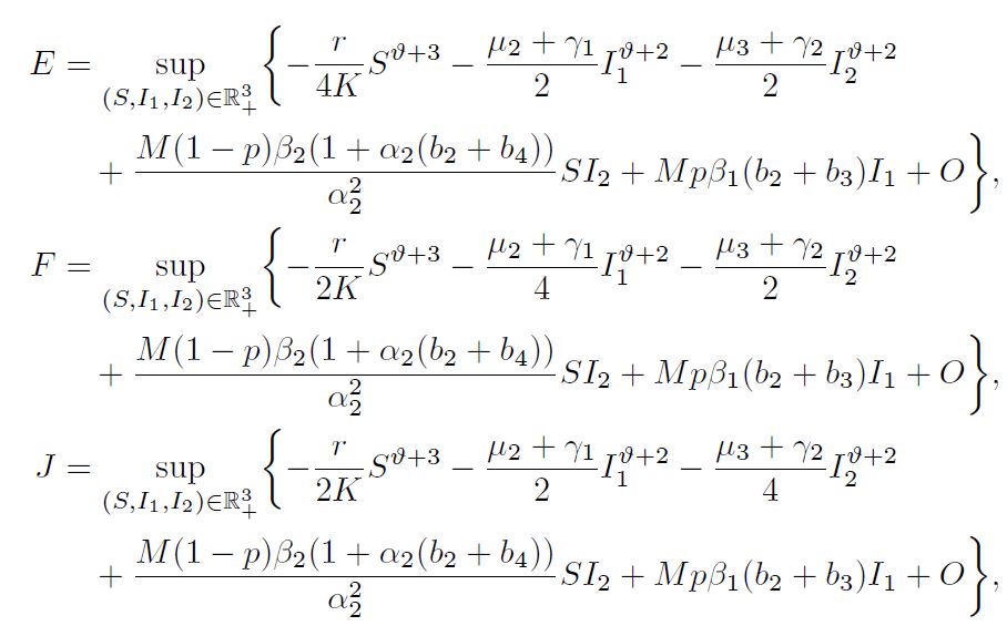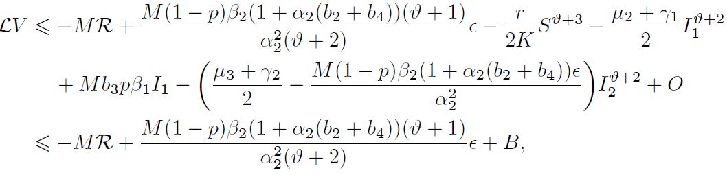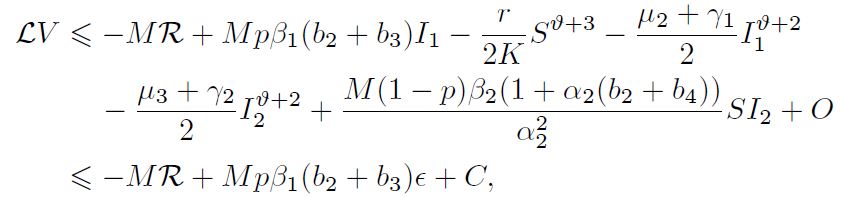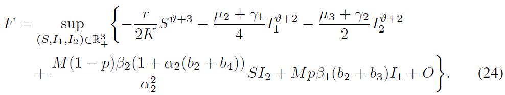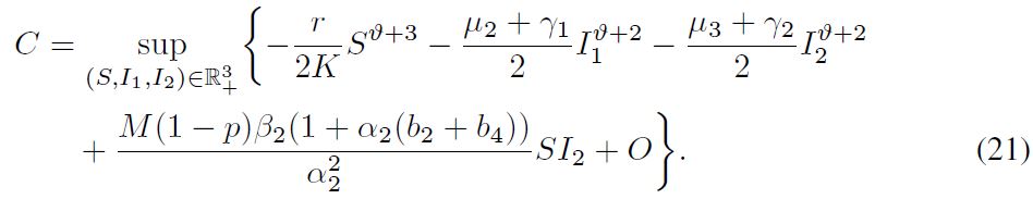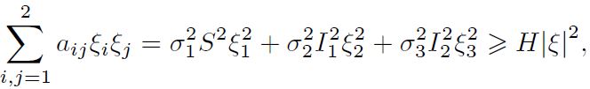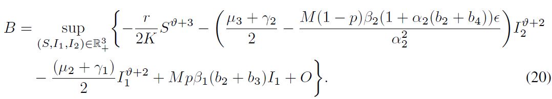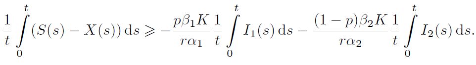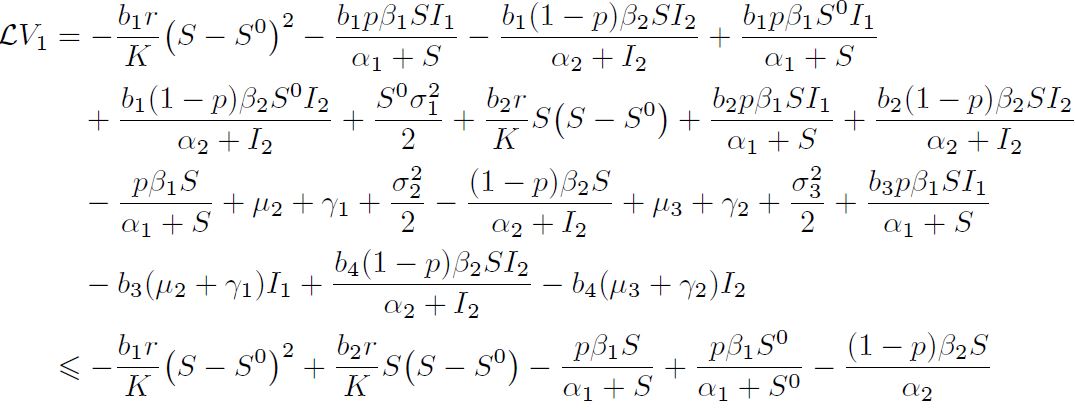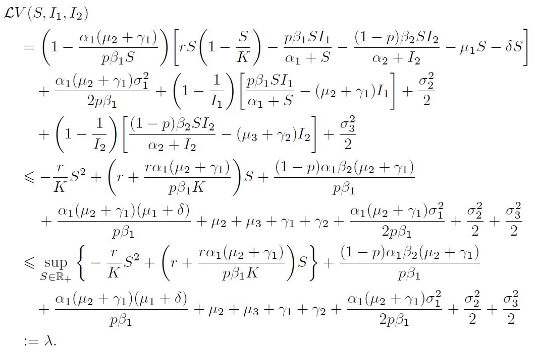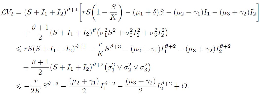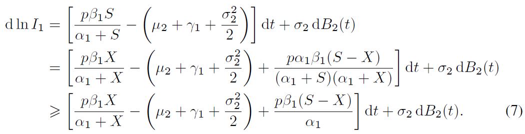 will be persistent in the mean. Similar to the item (ii), this result suggests that small stochasticity is beneficial to the survival of the diseases. (iii) When