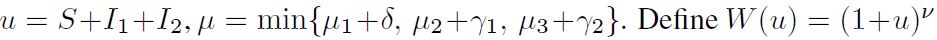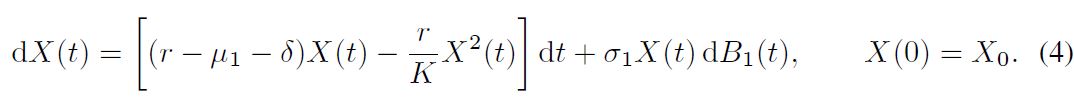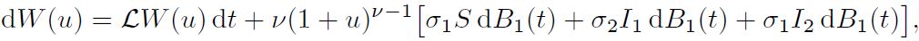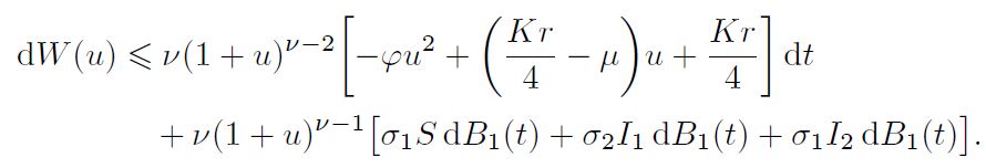 However, the spread of diseases is often affected by environmental noise [1, 4, 8, 9, 13, 15,16,21,24,28,30], a lot of literatures add randomness to reflect real life more accurately. The properties for stationary distribution of random variables were proved in [8]. [15] gave an SIR epidemic model that a susceptible person is infected with a disease and tem- porarily immunized. All references [1, 4, 9, 13, 24, 28, 30] are stochastic epidemic models with nonlinear incidence that has been used in chemostat model [25]. We assume that the mortality rates of