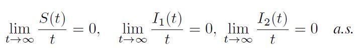 , both types of diseases will be extinct with probability one. Since the intensities of environmental stochasticities