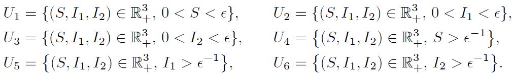 are positive constants defined in equations (20), (21), (22), (23), (24), (25), respectively. Next, six domains are given in the following: