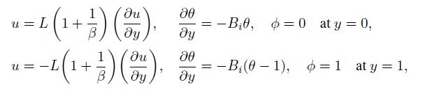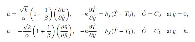 where are slip coefficient at the surface of the porous walls and heat coefficient, respectively.
