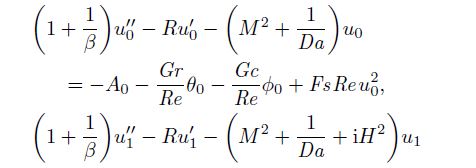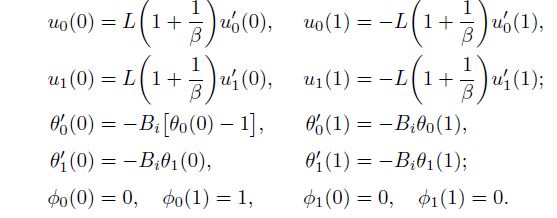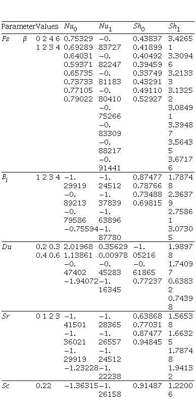 It is noted that the system of ODEs (10)–(15) along with associated boundary conditions(16) is nonlinear and coupled. We have employed the 4th-order Runge–Kutta techniquetogether with shooting method for finding the numerical solution. Throughout thecalculations, the employed parametric values unless otherwise stated.