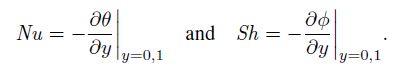 (16)Further, the dimensionless Nusselt and Sherwood numbers at the walls are given by