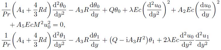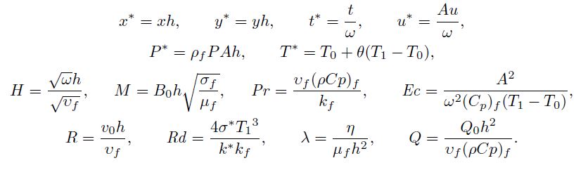 where Ec is Eckert number,M . is Hartmann number, Pr is Prandtl number, Q. is heat source/sink parameter, H . is frequency parameter,. is couple stress parameter, R . is the cross-flow Reynolds number, Rd is the radiation parameter.