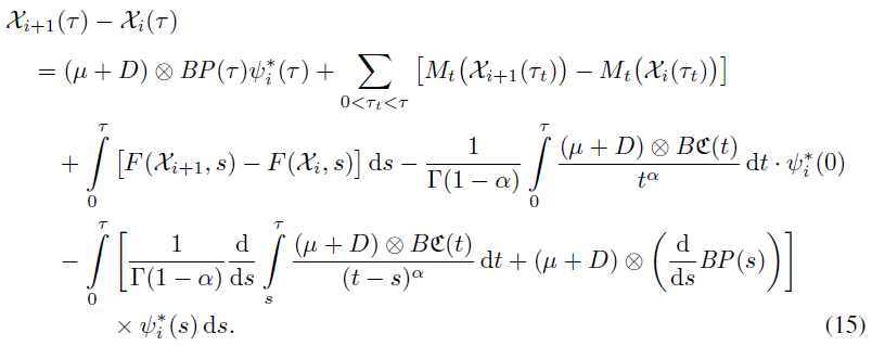 Recently, Luo et al. [20,21] studied the fractional ILC problem of fractional multi-agent systems. Liu et al. [15–17] studied the ILC of VTL for fractional impulsive systems. However, there are very few works on ILC of impulsive multi-agent systems with varying trial lengths even for the classical learning laws or fractional learning laws. Note that impulsive effects often appear in the control of multi-agent systems, and the memory communication always happen in each agent. In order to achieve the consensus of multiagent systems with impulse and past communication, one can try to adopt fractional ILC approach to deal with this problem. Here fractional ILC will be used to deal with the past communication in each agent.