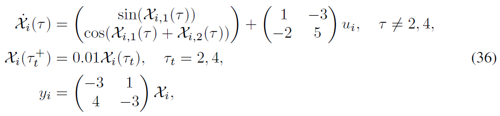 With the development of swarm intelligence algorithms, multi-agent systems are widely used in communication networks, wireless sensor networks, and unmanned vehicles. The consensus problem is a basic problem of MAS because it has a wide range of applications in formation control, distributed estimation, and congestion control. This is essentially the agent’s consensus tracking of a given target trajectory through the network. The multi-agent system is a system abstracted from the biological world, and the biological population may suddenly change state at certain moments. Due to predation, disease, and bird migration, changes in population status can occur. For this situation, MAS with impulsive can well describe the inevitable interference during actual system operation. The problem of consensus tracking of researching impulsive MAS is to study whether an agent can return to a predetermined trajectory through information exchange after being subject to external interference. In this regard, Cui [6] has carried out the relevant research. Zhang et al. [18, 30, 32] considered the consensus problem of impulsive MAS in the traditional consensus framework. In addition, impulsive control approach has advantage in simplicity and flexibility for such kind of systems because the standard continuous state information is not required. As a consequence, this approach has been offered to study adaptive consensus and synchronization problems [22,23] and consensus problem [5,26] for MASs.