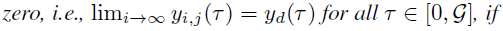represents the weighted adjacency matrix. The control objective is to design appropriate iterative learning laws such that the output of all agents can asymptotically converge to the desired trajectory