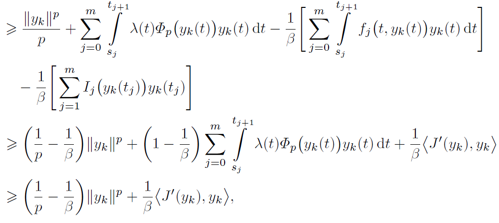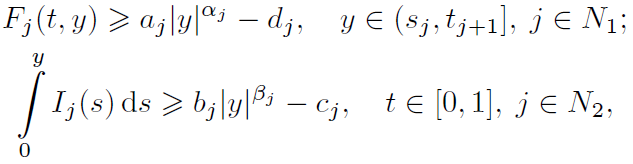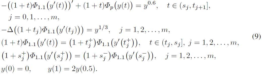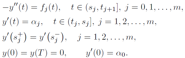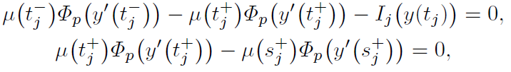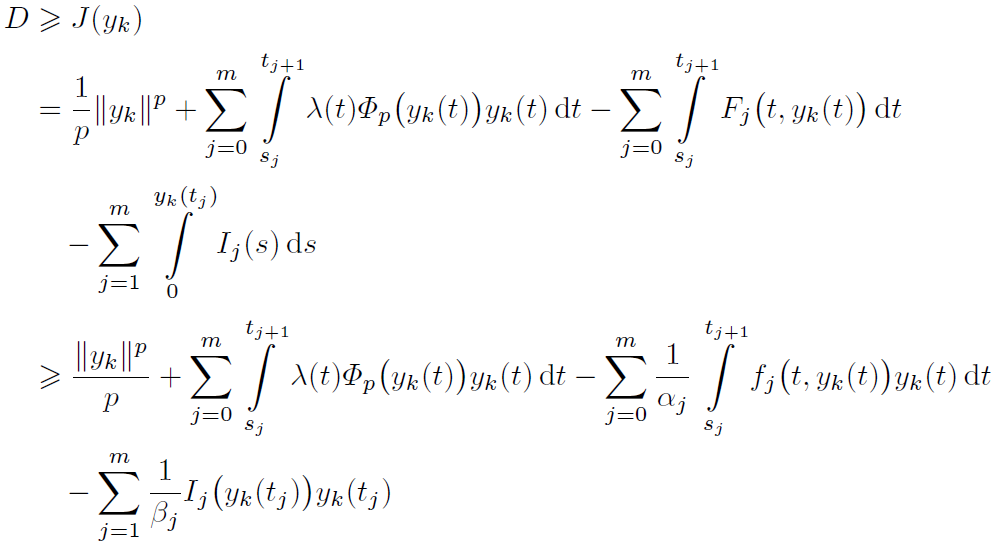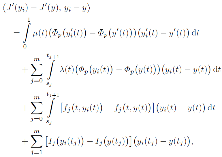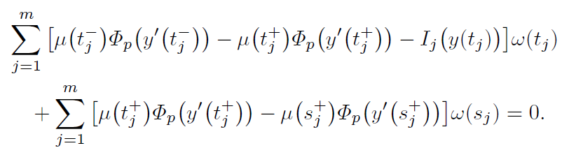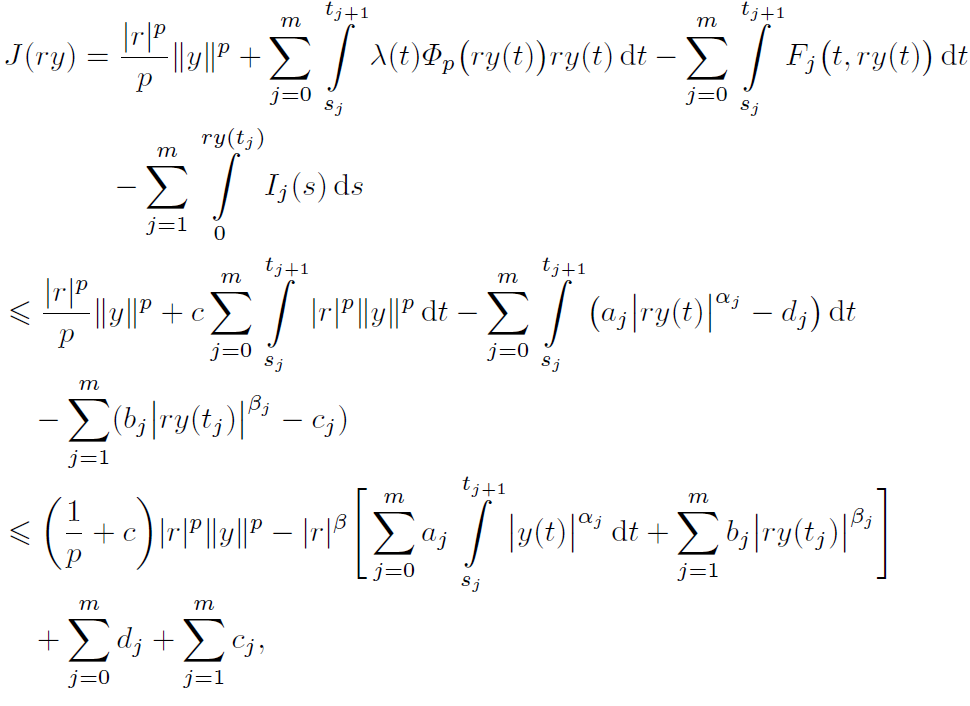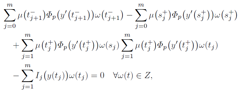 Impulses can be divided into instantaneous and noninstantaneous impulses due to the duration. However, in many applications, instantaneous and noninstantaneous impulses occur at the same time in some dynamic processes such as intravenous injection. Since the drug enters the blood and the subsequent absorption of the body is a sudden and continuous process, this situation can be explained as an impulsive behavior. The impulse suddenly starts to jump at any fixed point in time (drug enters the blood) and continues to occur within a limited time interval (the body absorbs the drug). Due to its wide range of applications, some scholars began to study the existence of solutions of differential equations with instantaneous and noninstantaneous impulses, and through fixed point theorems, upper and lower solution theorems, variational methods, etc., they obtained some excellent results [1,3,4,6–8,10,11,13–19]. Especially, in [4], Bai and Nieto first gave the variational structure of a linear equation with noninstantaneous impulses as the following problem: