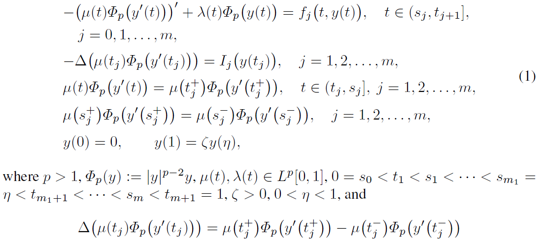 Abstract: In this paper, we study the multiple solutions for some second-order .-Laplace differential equations with three-point boundary conditions and instantaneous and noninstantaneous impulses. By applying the variational method and critical point theory the multiple solutions are obtained in a Sobolev space. Compared with other local boundary value problems, the three-point boundary value problem is less studied by variational method due to its variational structure. Finally, two examples are given to illustrate the results of multiplicity.