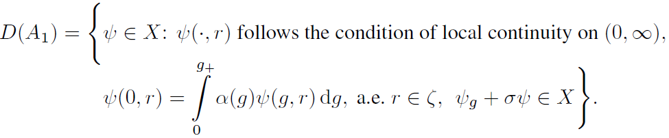 In [5], the behavior of the semigroup of the following linear population dynamics model with Dirichlet boundary condition type was studied: