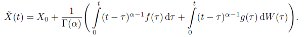 Lemma 1. (See [8, Thm. 1].) Suppose that (H1) and (H2) hold. Then for α ∈ (1/2, 1), (1) has a unique solution X( .) ∈ Xt := L2(Ω, Ft, P) given by (2).