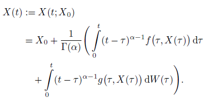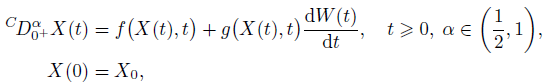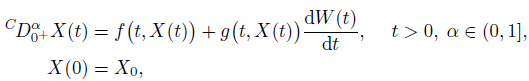 (1)where CDα denotes the Caputo fractional derivative, f, g : [0, +∞) × R → R are measurable functions, and {W (t), t ∈ [0, +∞)} is a standard scalar Brownian motion on an underlying complete filtered probability space (Ω, F, F := {Ft}t∈[0,+∞), P).