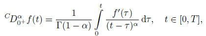 Definition 1. (See [12].) Let α ϵ (0, 1], T > 0, f : [0, T ] → R be a differentiable function. The Caputo fractional derivative of f is defined as
