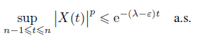 Theorem 5. Assume (H1), (H2) and (H3) hold. Then the travail solution of (1) is pth moment exponentially stable (also almost surely exponentially stable).