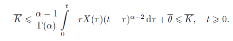 (iii) |V x (X(t), t)|2 ∫0 t |g(X(t), t)(s − τ )α−2|2 dτ ≥ c3 V 2(X(t), t) for all X(t) ≠ 0, α ∈ (1/2, 1) and t ≥ 0.