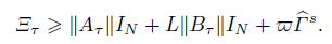(5)where Γ^ = (γˆij)N×N , γˆij = γij, i ≠ j, γˆii = ρminγii/α, α = ǁΦǁ, ρmin is the minimum eigenvalue of Φs, ≡ T = diag (ξ1τ, ξ2τ, ….. ξNτ), and α = α (nN) (1-q)/2, T = 1,2, ……, r, i, j = 1,2, ….., N.
