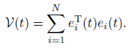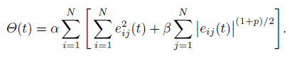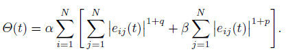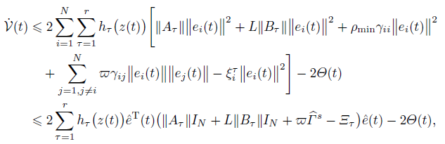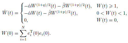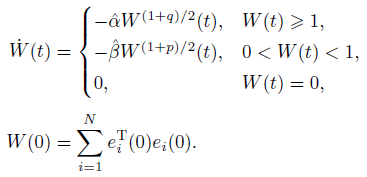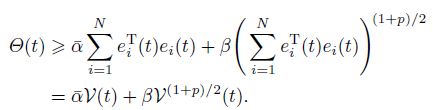 where eˆ(t) = (ǁe1(t)ǁ, ǁe2(t)ǁ, . . . , ǁeN (t)ǁ)T, Θ(t) = Σi=1N eiT(t)[α sign(ei(t )) × │ei(t)k + βepi (t)].