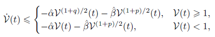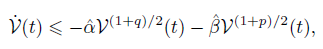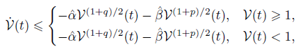 Remark 4. When V(t) ≥ 1, - αˆ (1+q)/2(t) plays an important role, while when V(t) < 1, - βˆ V (1+p)/2(t) is a key role. We can give the estimation of setting time with the help of the similar comparison: