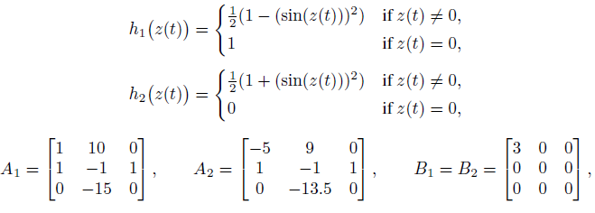 Now, we give numerical simulations to verify our synchronization criteria. Here we consider the following TSF systems: