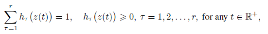 wτ (z(t)) ≥ 0 and Σr=1r wτ (z(t)) > 0. Mτj(zj(t)) is the grade of membership function of zj(t) in Mτj. It is clear that
