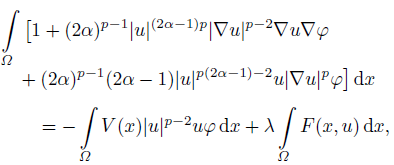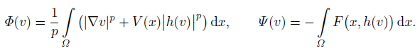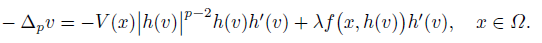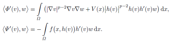 (7)Thus, from (6) and (7) it is easy to know that u = h(v) is a weak solution of problem (1). As the result, it is sufficient to consider the existence of solutions of (7) in W 1,p(Ω).