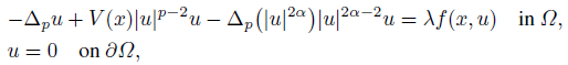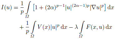 Equation (1) involves a quasilinear and nonconvex diffusion term ∆p( │u│ 2α) u 2α−2u. In the literature, it is referred as so-called modified nonlinear Schrödinger equation. For the case p = 2, the solution of (1) is related to standing wave solutions of the following quasilinear Schrödinger equation: