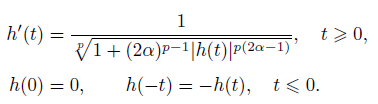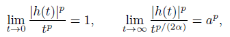 (h7) There exists a ∈ (0, (2α)1/(2pα)] such that h(t)t−1/(2α) → a as t → +∞;