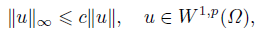 Notice that p > N , W 1,p(Ω) ‹ → C(Ω) is compact. Thus, there exists a constant c > 0 such that