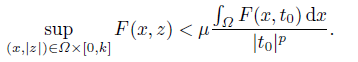 such that F (x, t0) > 0. We take z0 = 0, z1 = s0 = h−1(t0), then 1 < t0 = h(s0) . Denote r = Q(M/c)p, we have