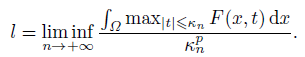 On the other hand, from (F2) and (F3) we get Ω F (x, t0) dx ≥ 0 and