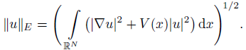 (5)where λ ≥ 0, 4α < p + 1 < 4αN/(N − 2), α ≥ 1/2, V ∈ C(RN ) and (V) There exists V0 > 0 such that V (x) ≥ V0 in RN . Moreover, V (x) → as │x│ → ∞, or more generally, for every M > 0, meas {x RN : V (x) ≤ M} < , where “meas” denotes the Lebesgue measure in RN .