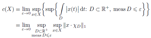 We need to construct a measure of noncompactness in L1. For nonempty and bounded subset X of the space L1, let