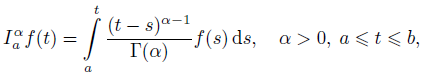 Definition 4. (See [26].) Let f ϵ L1 and α ϵ R+. The Riemann–Liouville (RL) fractional integral of the function f of order α is defined as