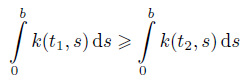 (iv) k : R+ → R+ → R satisfies Carathéodory conditions such that the linear operator K : L1 L1 is continuous and maps the set of a.e. nonincreasing and positive functions into functions of the same type.