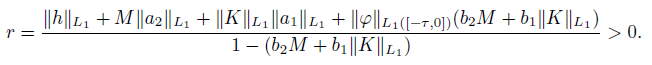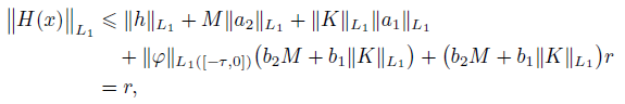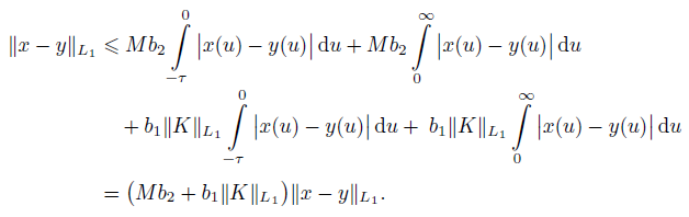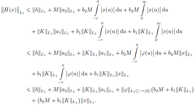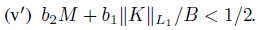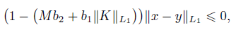 (v) b2M + b1ǁKǁL1 < 1/2, where ǁKǁL1 is an operator norm ǁKǁL1 →L1 .