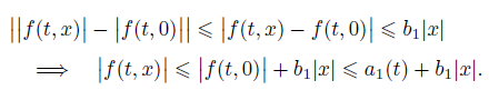 f (t, x) ≤ a(t) + b|x|